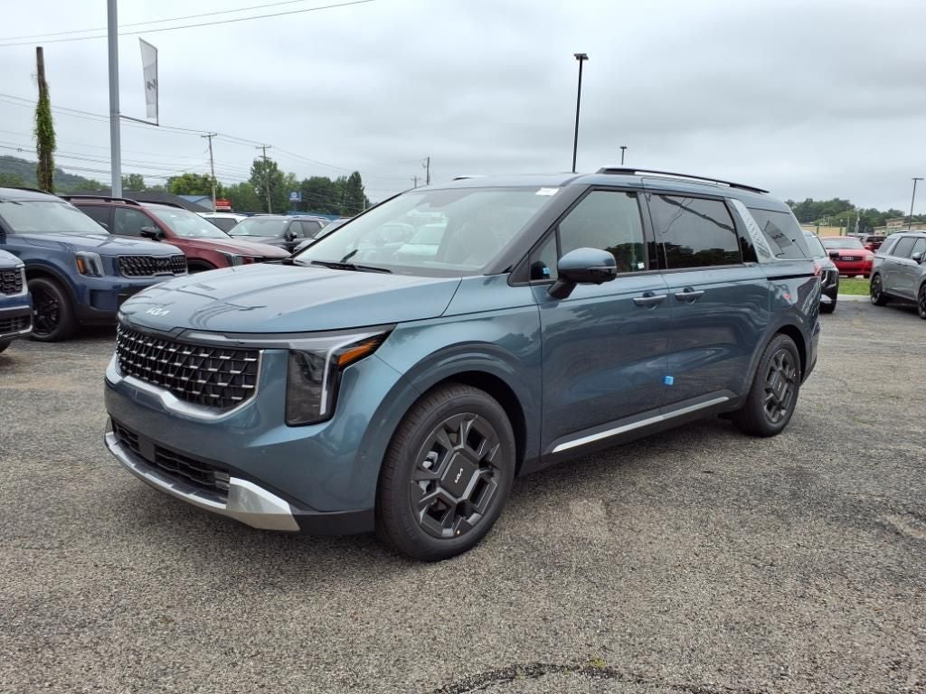 Never get into a cold vehicle again with the remote start feature on this model. You'll never again be lost in a crowded city or a country region with the navigation system on this mini van. This Kia Carnival features a hands-free Bluetooth® phone system. Apple CarPlay: Seamless smartphone integration for this mini van - stay connected and entertained on the go! The Kia Carnival employs advanced tech for collision avoidance, enhancing safety on the road. See what's behind you with the back up camera on this 2026 Kia Carnival . The Kia Carnival offers Android Auto for seamless smartphone integration. The leather seats in this unit are a must for buyers looking for comfort, durability, and style. This model has a V6, 3.5L high output engine. This mini van shines with an exquisite blue finish. Load groceries and much more with ease into this unit thanks to the power liftgate.