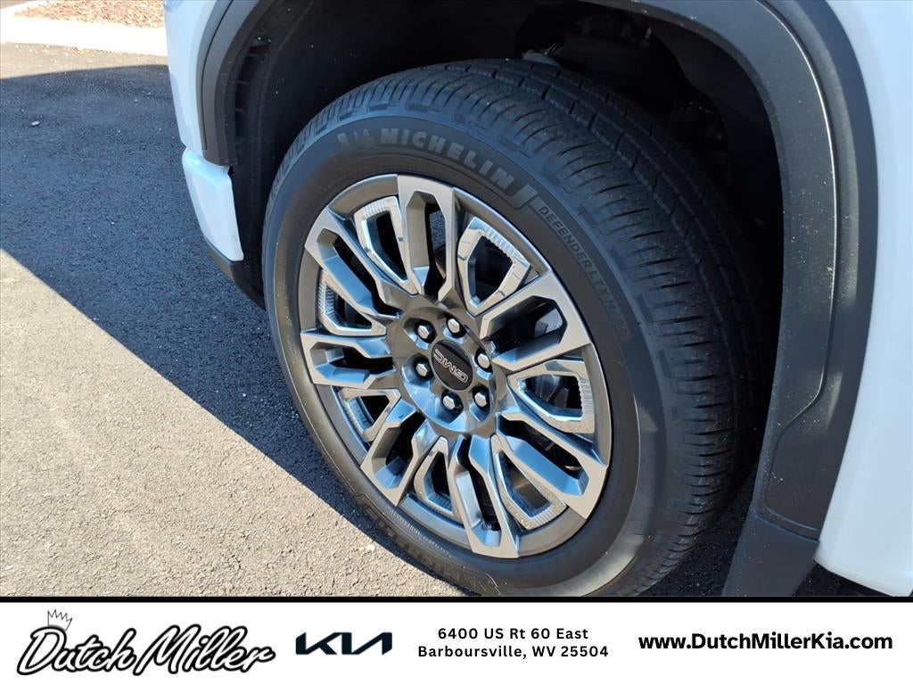 Preferred Equipment Group 5SB: Trailer Side Blind Zone Alert; Power Sliding Rear Window with Rear Defogger; Ultrasonic Front and Rear Park Assist; Trailer Camera Provisions; Electric Rear-Window Defogger; Theft Deterrent System (unauthorized Entry); Vader Chrome Header with Signature Denali Grille; Front Rainsensing Wipers; Heavy-Duty Air Filter; Compass; 120-Volt Instrument Panel Power Outlet; Heated Driver and Front Outboard Passenger Seating; Wireless Charging; Color-Keyed Carpeting Floor Covering; OnStar and GMC Connected Services Capable; Heated 2nd Row Outboard Seats; Power Front Passenger Windows with Express Up/down; Power Rear Windows with Express Down; Integrated Trailer Brake Controller; HD Surround Vision; Ventilated Driver and Front Passenger Seats; Power Rake and Telescoping Steering Column; Power Sunroof; Multicolor 15" Diagonal Head-Up Display; Keyless Open and Start; Bose Premium Series with 12- Speaker System; Perimeter Lighting; Push Button Start; LED Cargo Area Lighting; Remote Vehicle Starter System; In-Vehicle Trailering App; Hill Descent Control; Floor-Mounted Center Console; 6.2L EcoTec3 V8 Engine; Bed View Camera; Rear Cross Traffic Braking; Trailer Tire Pressure Monitor System; GMC Pro Safety; Electrical Steering Column Lock; Trailering Package; Wireless Phone Projection; 2 USB Ports; 2 Charge/data USB Ports Inside Center Console; Chrome Recovery Hooks; Denali Premium Suspension with Adaptive Ride Control; Steering Wheel Audio Controls; 2 type-C Charge-Only Rear USB Ports; GMC Connected Access Capable; Universal Home Remote; MulitPro Audio System by Kicker; 2-Speed Transfer Case; Deep-Tinted Glass; Spray-On Pickup Bed Liner with Denali Logo; SiriusXM with 360L; Hitch Guidance with Hitch View; Power Front Windows with Driver Express Up/down; Rear Pedestrian Detection; Wi-Fi Hotspot Capable; Rear Wheelhouse Liners; Auto-Locking Rear Differential; Power Door Locks. White Frost Tricoat. 3 Years of OnStar Safety and Security. Rear Underseat Storage. GMC MultiPro Tailgate Step Lights. Front Premium Floor Liners with Removable Carpet Insert. **Equipment listed is based on original vehicle build and subject to change. Please confirm the accuracy of the included equipment by calling the dealer prior to purchase.**